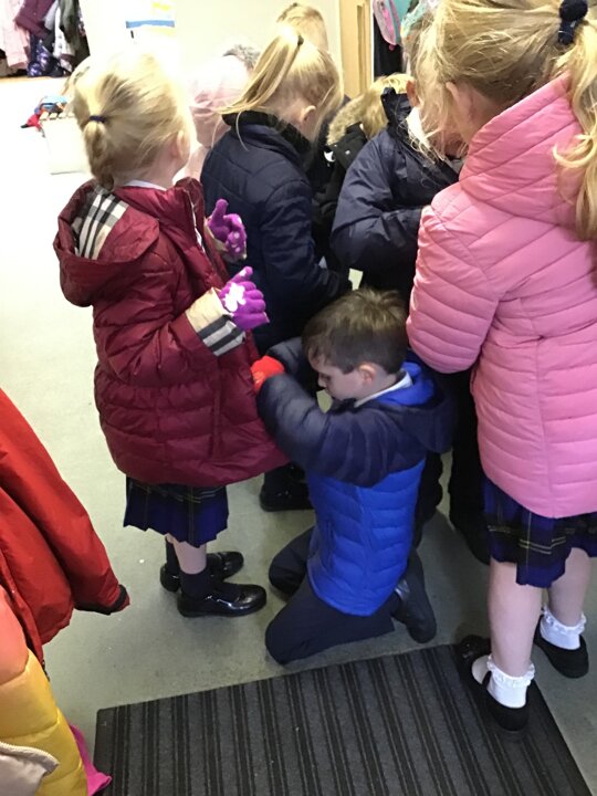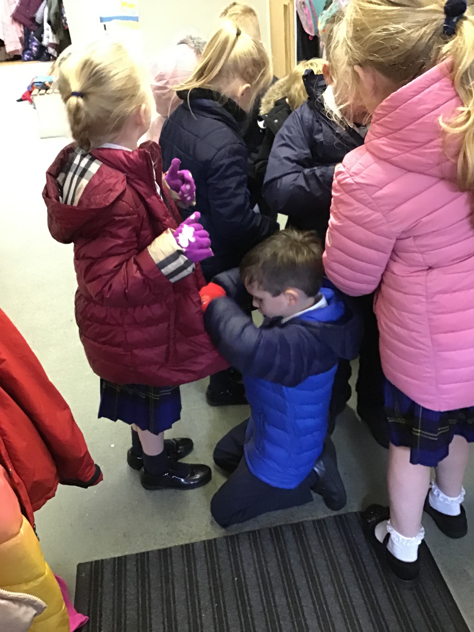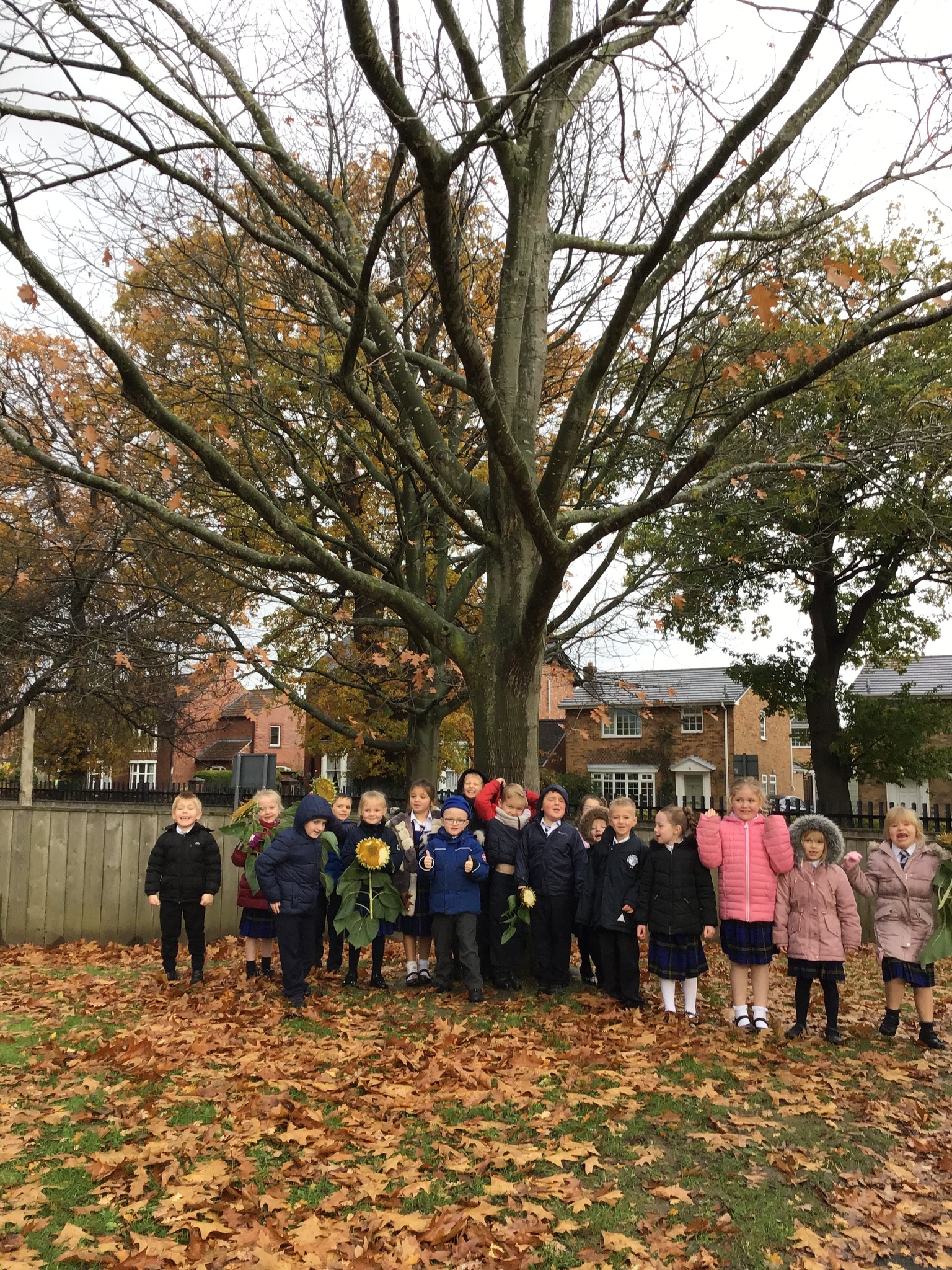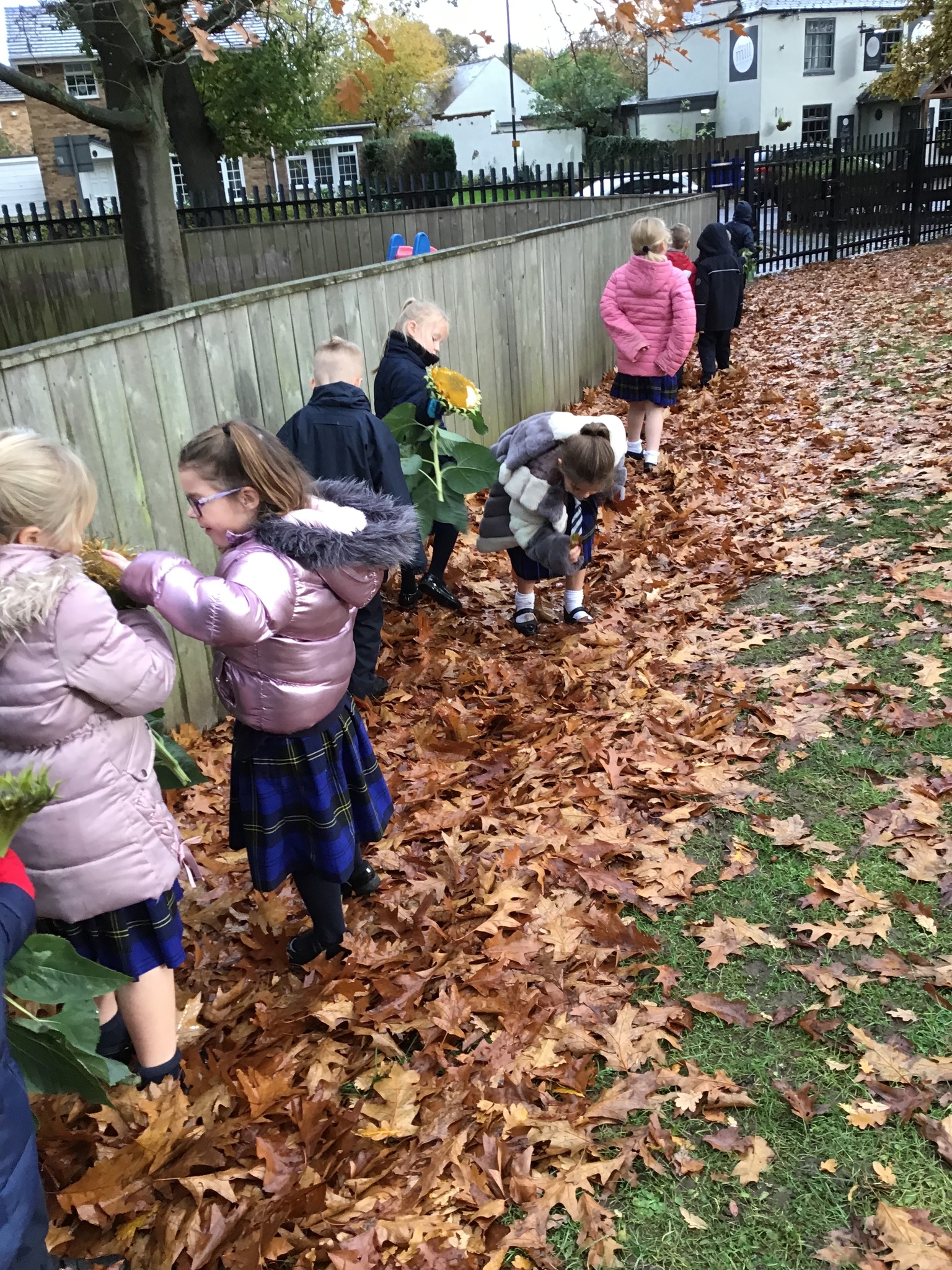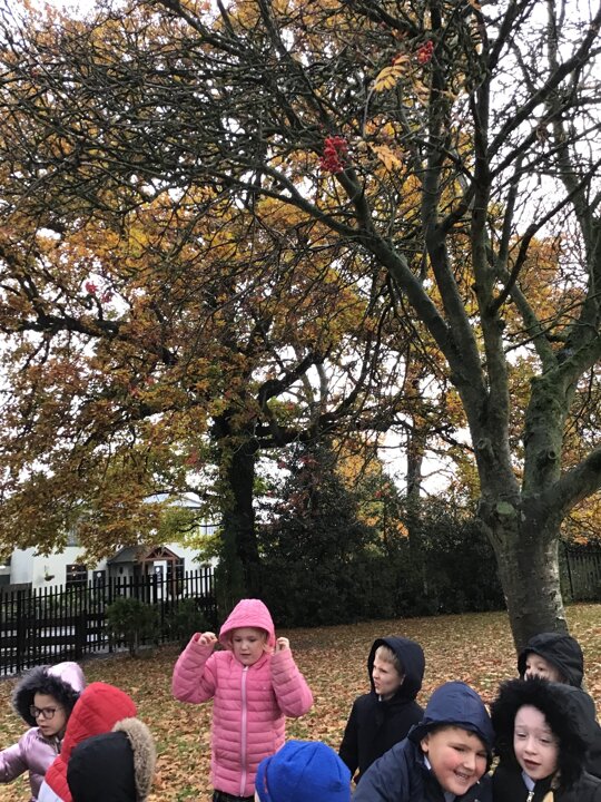 As part of our ongoing work in Science, learning about the seasons, we looked back at the photographs that we took in RE during September. We talked about what had changed and why. We went out to take some more photos so that we could compare. In true English Autumn style it starts to rain once we got outside. There was certainly no chance of us lying on the playground to gaze at the blue sky today.