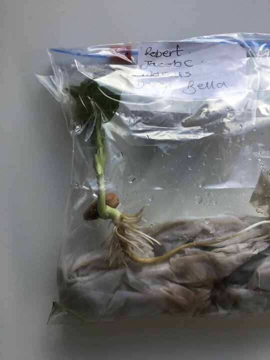 Over the last few weeks we have been caring for and observing our seeds germinating and growing. They all germinated at different times and grew different amounts even though we all planted the same seeds in the same way. We planted some of our bean seeds in plastic bags so we could watch the seed as it began to grow.
