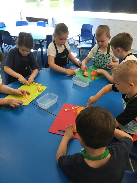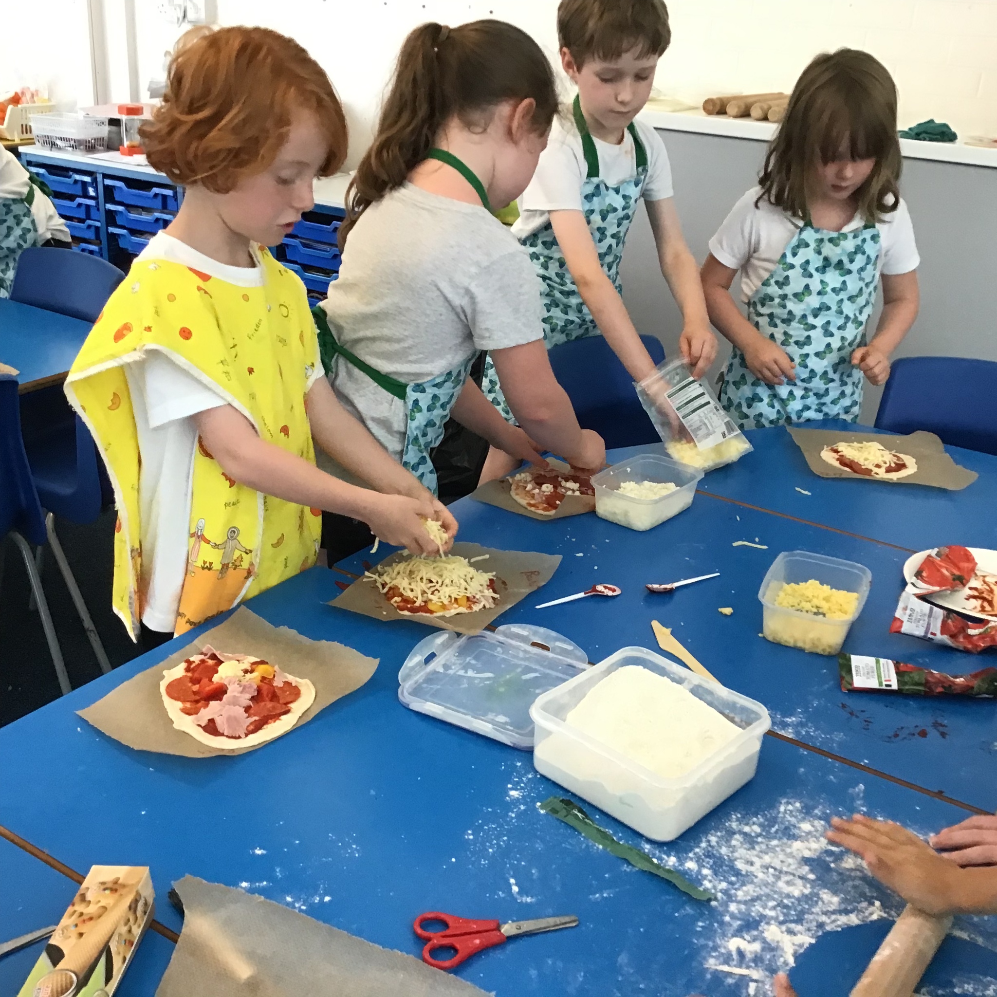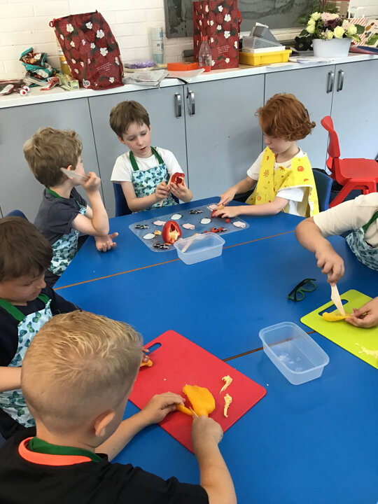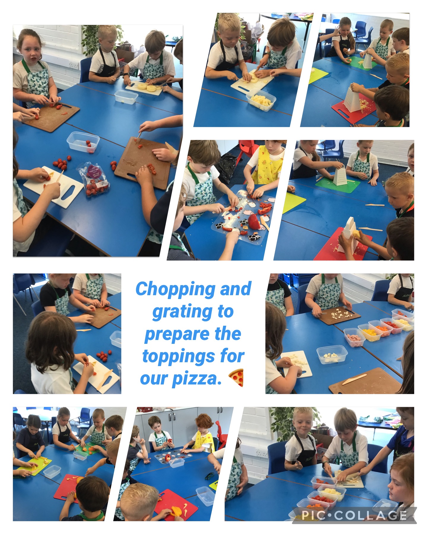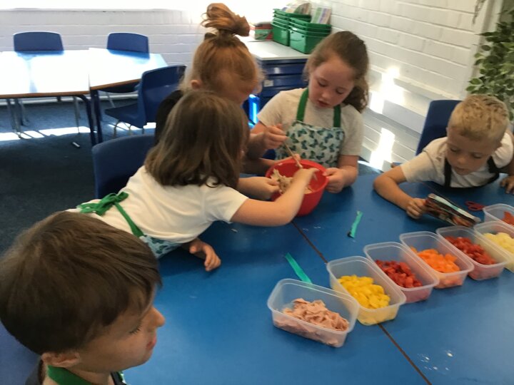 We have had a busy week making pizza, we have completed all kinds of challenges including improving our skills using the track pad dragging and dropping to make digital pizza. The real thing was much tastier, we all improved our skills using food preparation tools, we chopped, grated, mixed, kneaded, rolled and spread to make our own very tasty pizza, delicious.