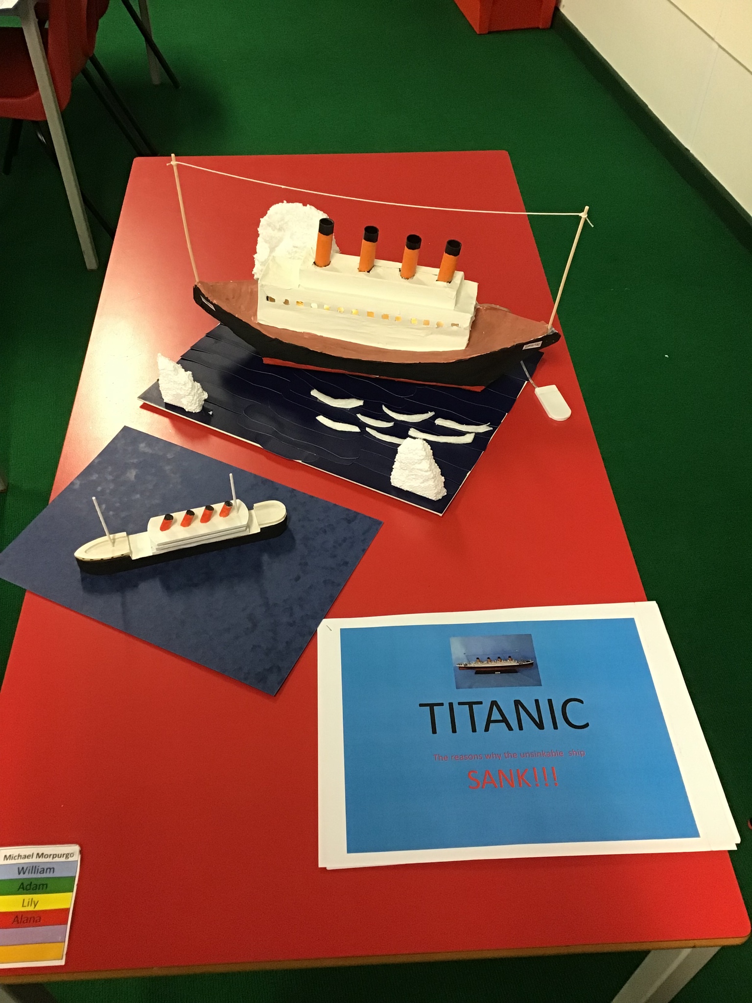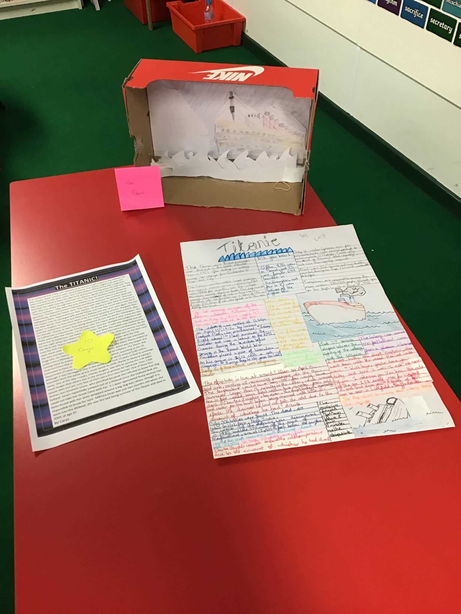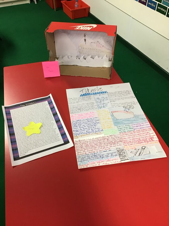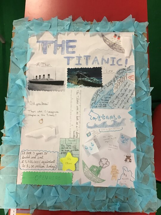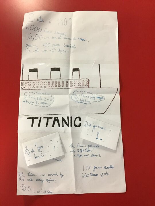 The children were asked to produce a piece of homework about the Titanic in any form they liked. It was to be a collaborative piece of work with other family members and it was to be completed over a period of time. The children were also asked to complete a questionnaire about their homework.