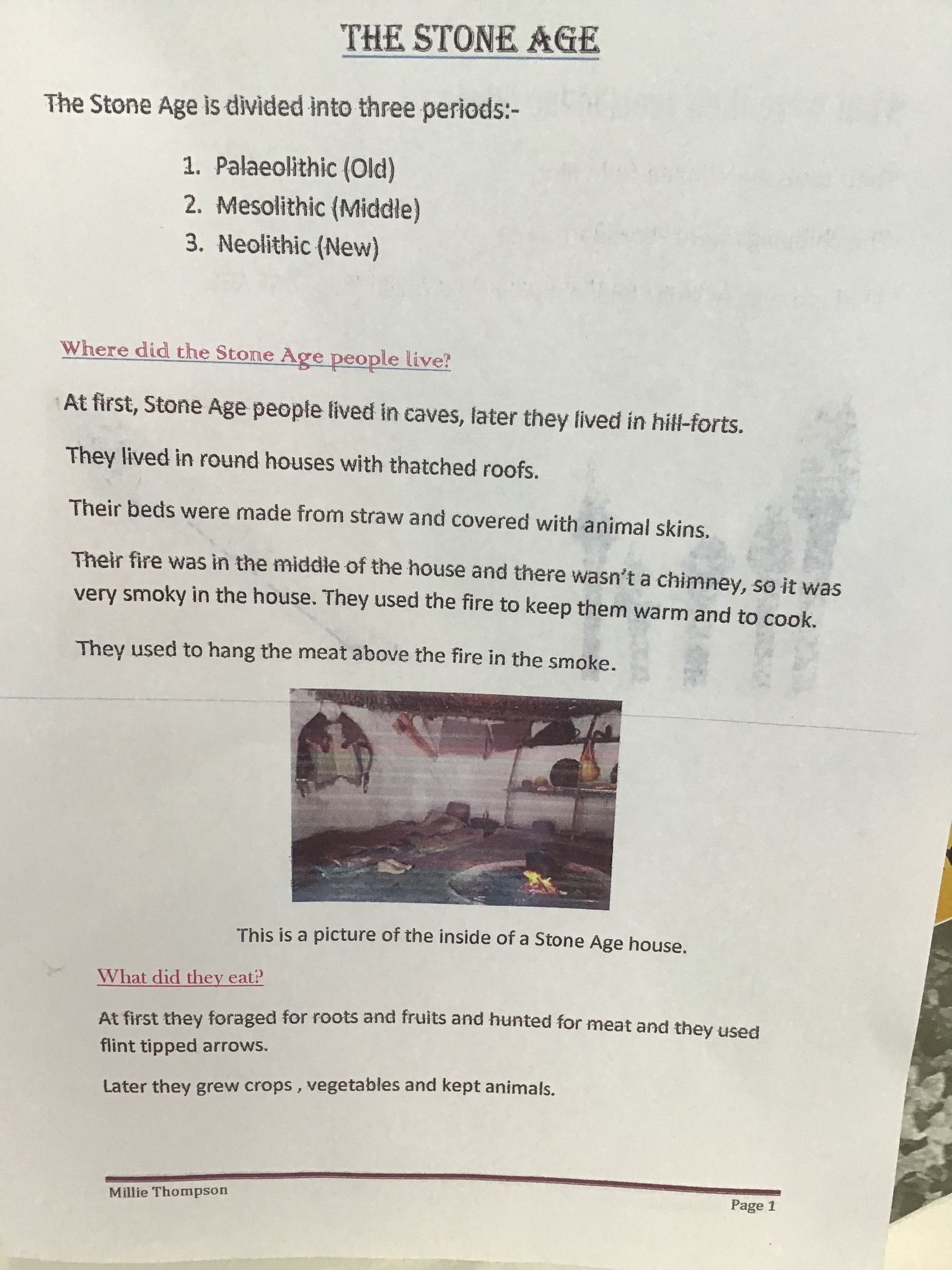 Thank you to all the parents and children who completed the Pre-Learning Task about the Stone Age.