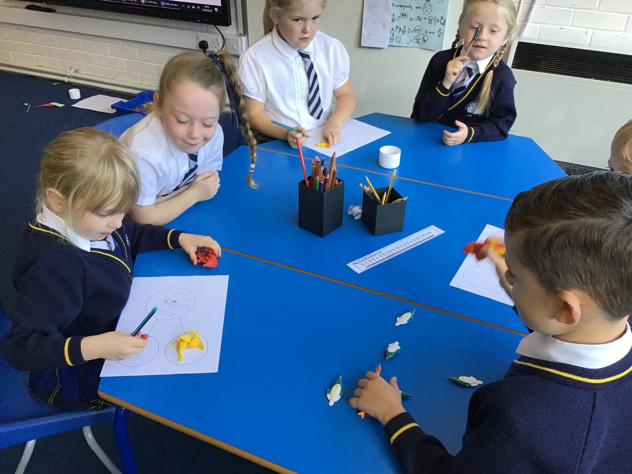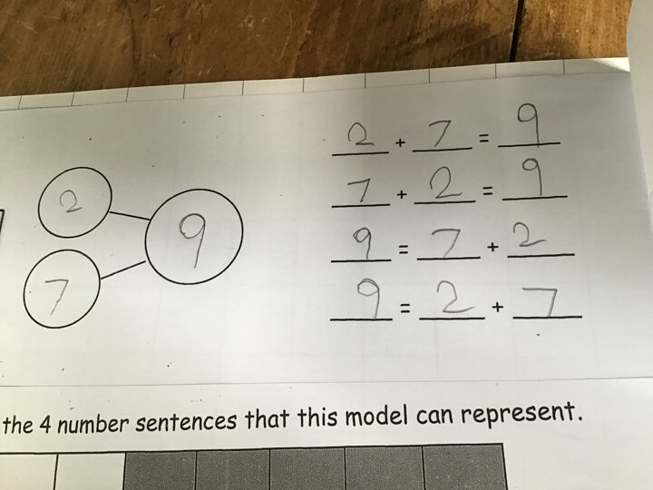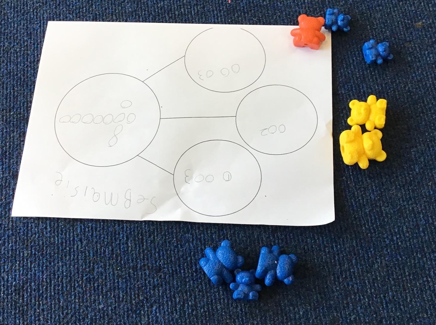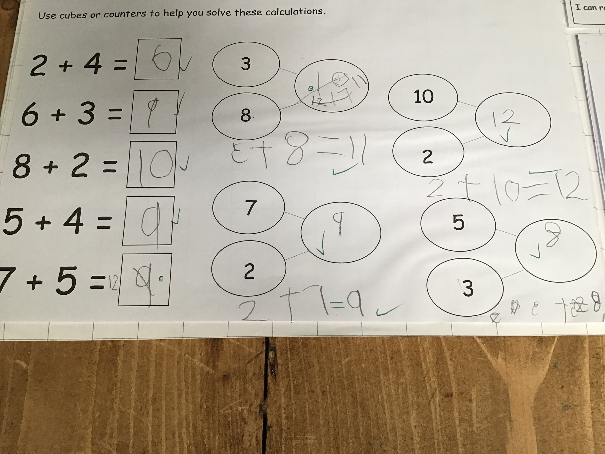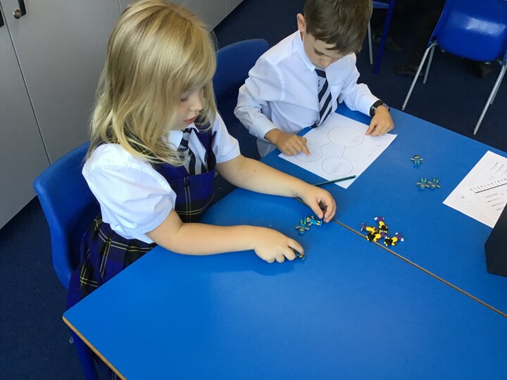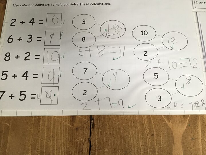 This week we have been using the part whole model to help us develop our understanding of the symbols + and =. The model is made up of one circle for each part ( the numbers that are to be added together) these are joined to a larger circle where the parts can be put together and we car work out what the whole number is. It is helpful to the children because they can use counters or draw pictures to help them work out the total. It is also helpful as it supports children to understand that 2+3 is the same as 3+2 and that addition can be done in any order. It will also help us next week when we begin learning our number bonds. These are pairs of numbers that make a given total e.g. 1+4 2+3 0+5 all equal 5. Rapid recall of these number facts is one of our Year One non-negotiable skills, this means by the end of the year we will be experts at knowing our number bonds. Practising regularly at home in different ways can really help.