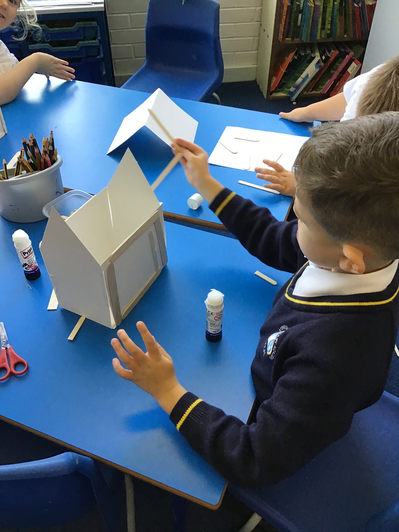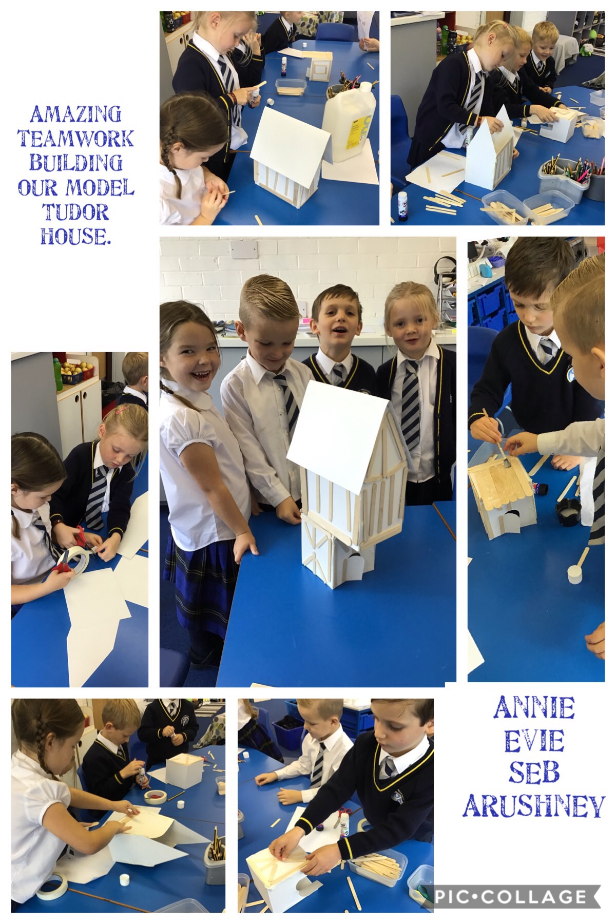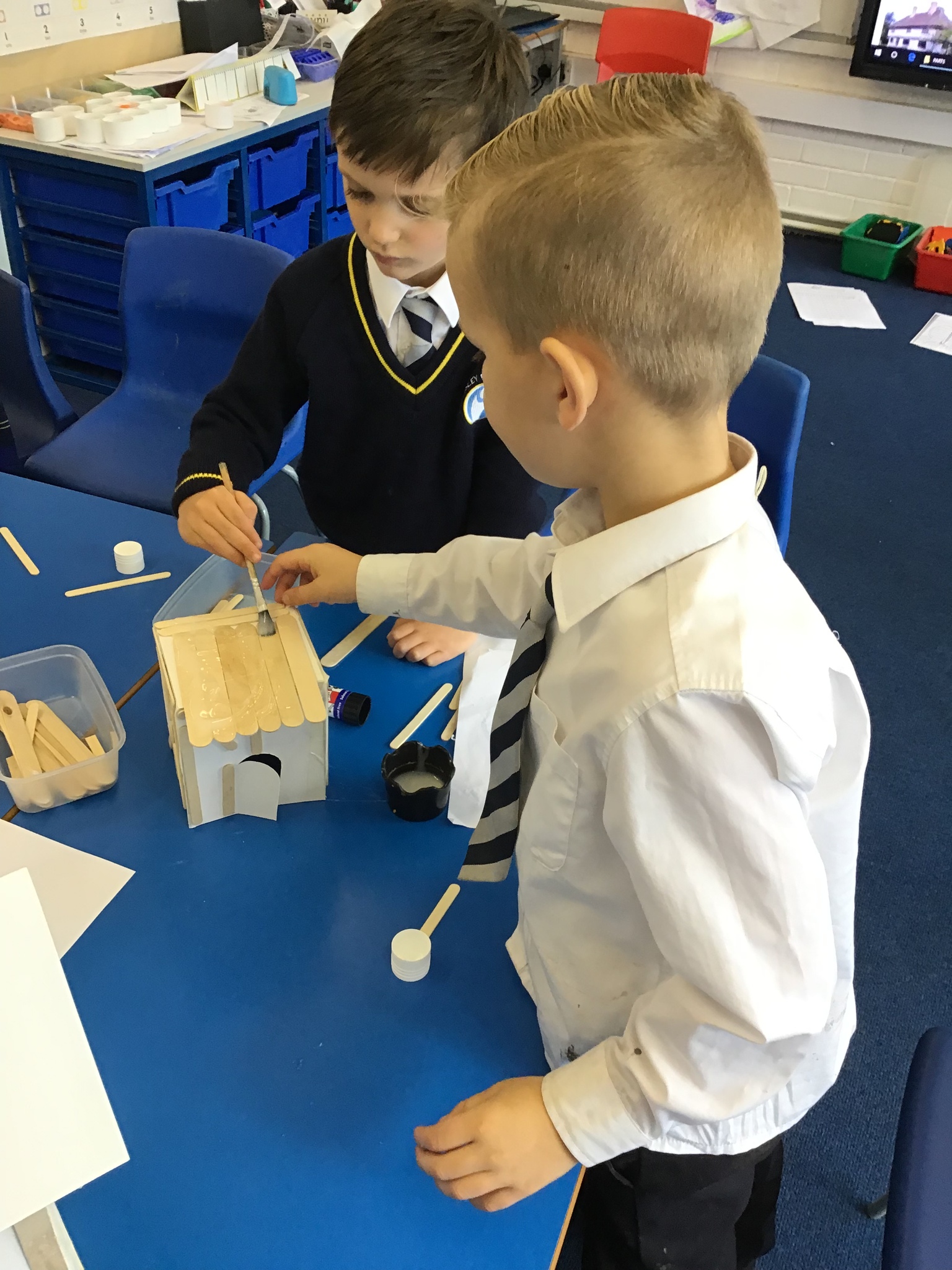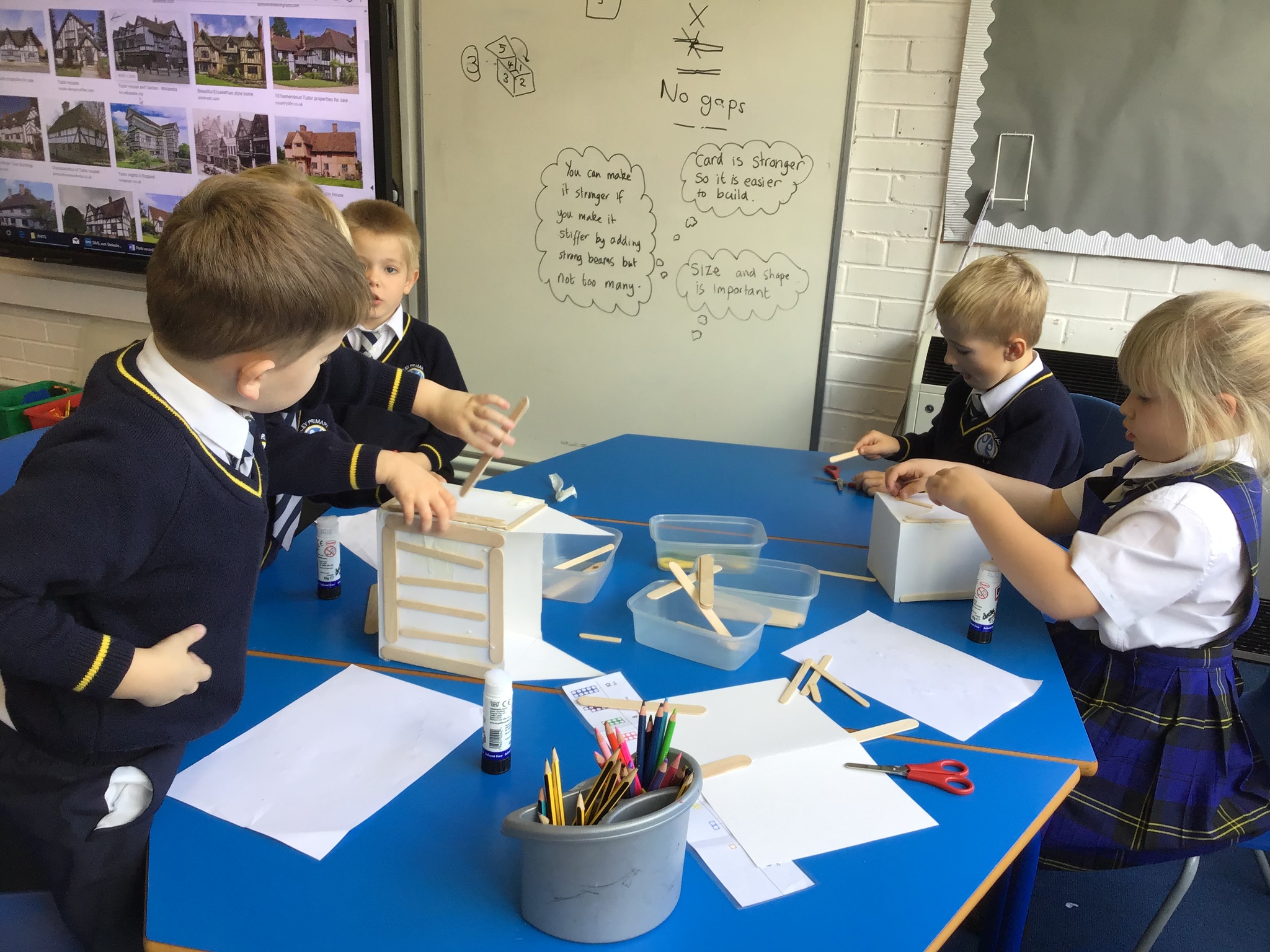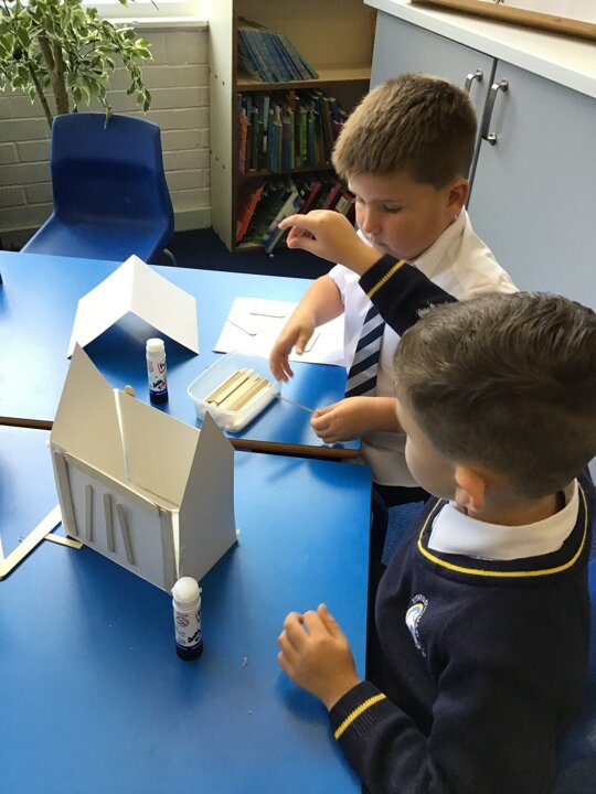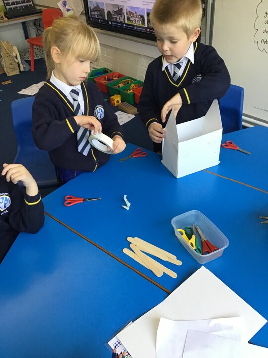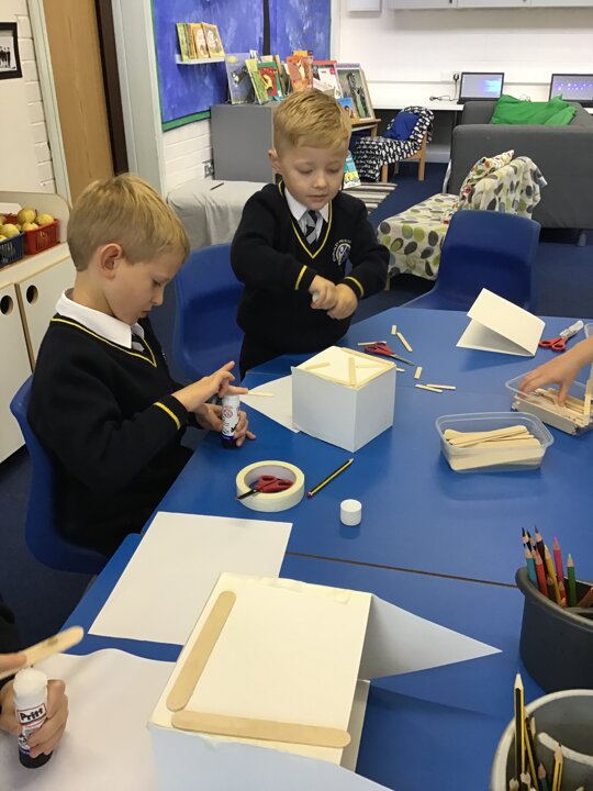 What amazing work today. The children worked so hard to assemble their houses from the shapes they had chosen and worked brilliantly as teams to make their houses. We used wooden sticks to strengthen the model just like real Tudor houses. Next we will focus on adding details to make our model very realistic. I am very very proud of Year One today as this was a super tricky challenge!!!!!