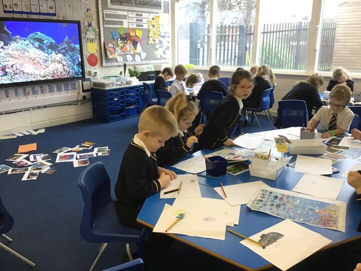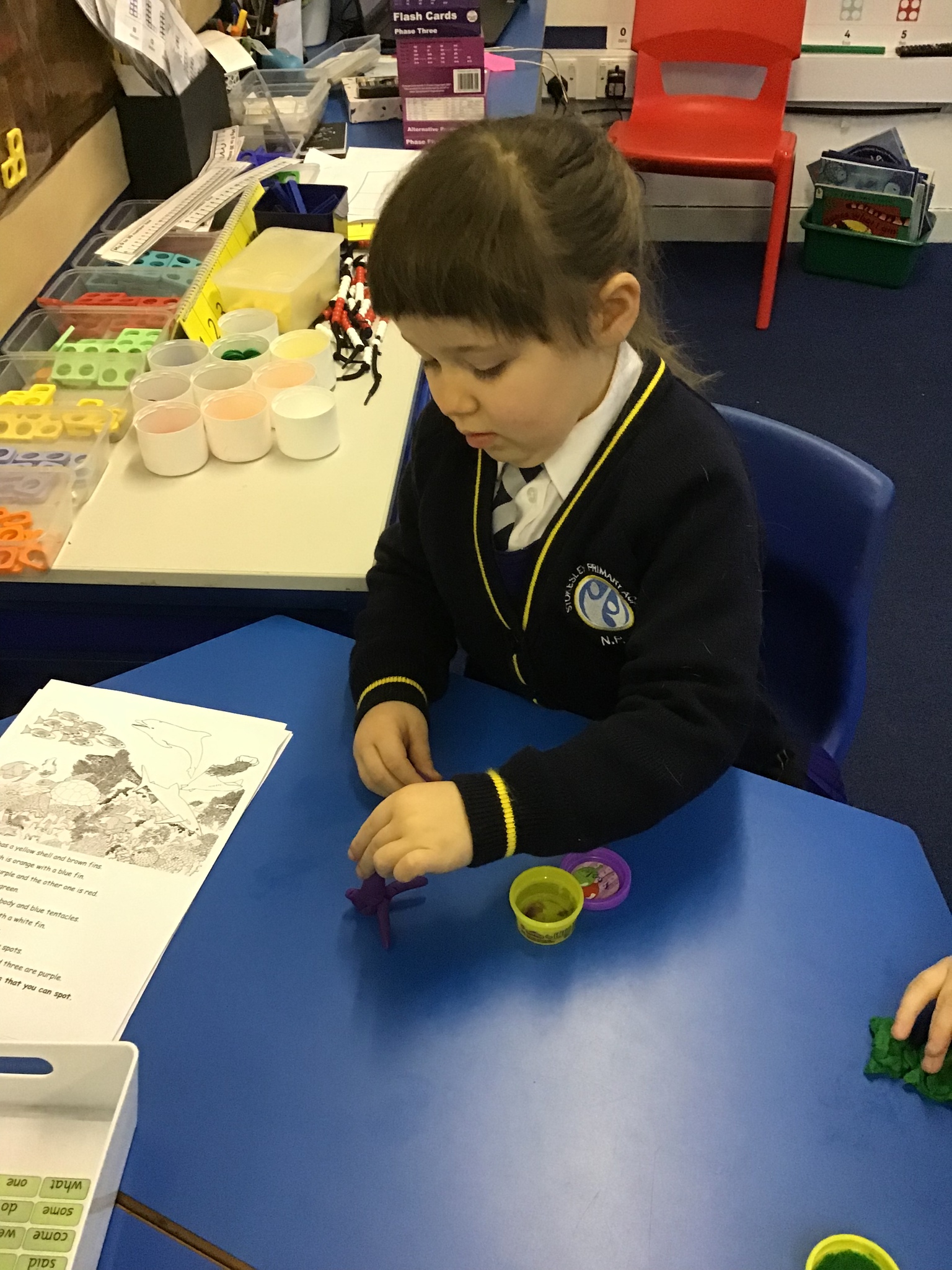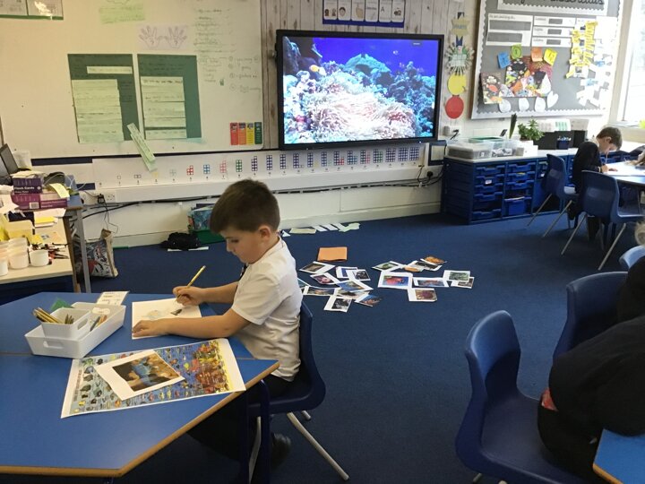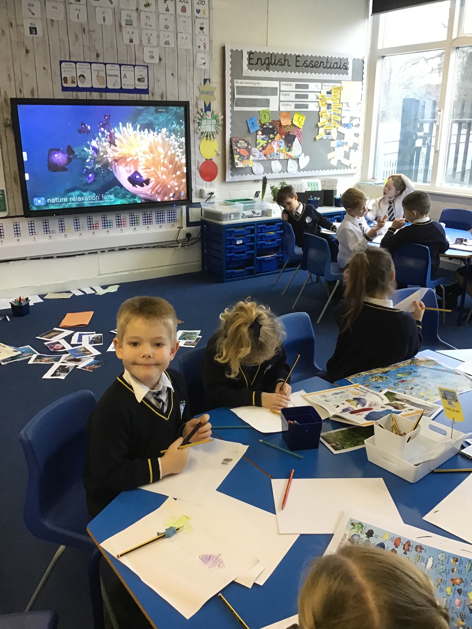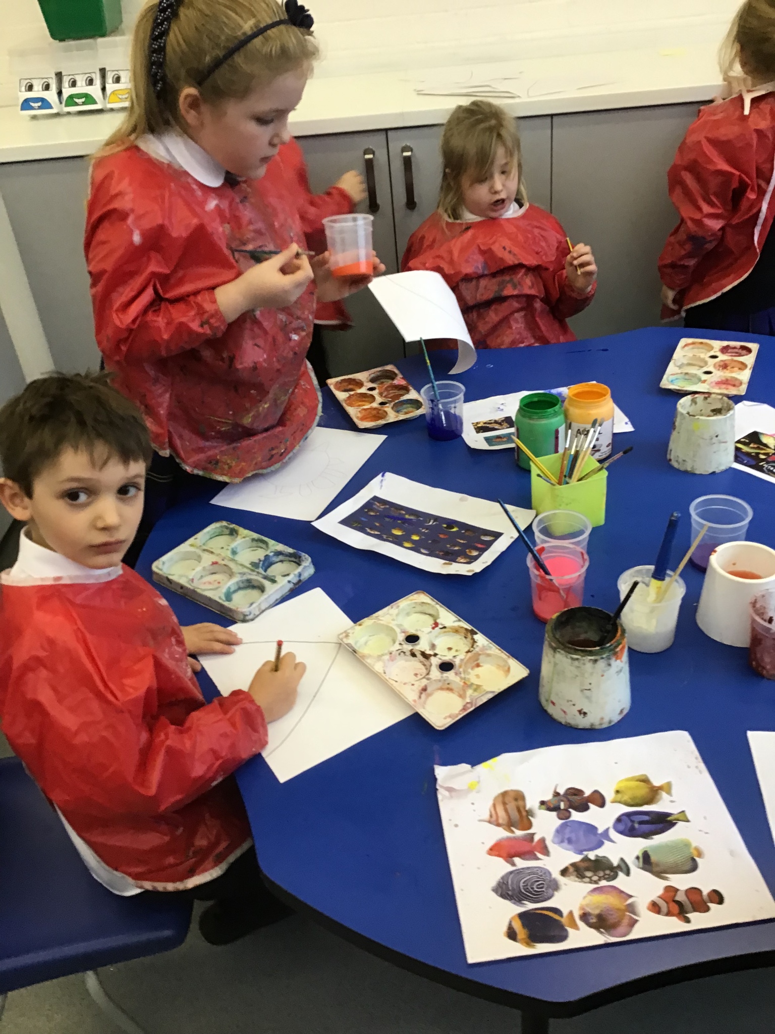 This week we have been investigating the creatures that live in the coral reefs and finding out what coral is. We have been drawing and painting the creatures that live on the reef as well as having a go at modelling coral with play dough. We have written facts that we already knew and spent time trying to find the answers to our questions. We have also been practising using our describing words playing guess my creature or spot my shell. The children have done some super writing describing the creatures of the coral reef and have worked very hard. Hopefully they will tell you all about what they have learnt so far.