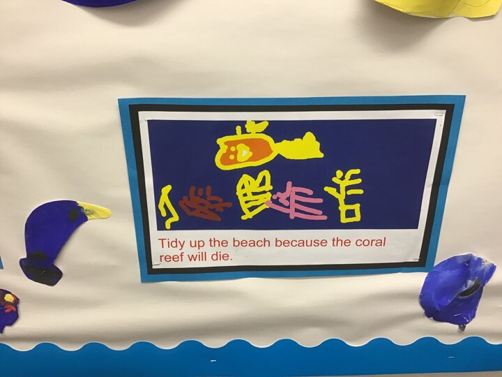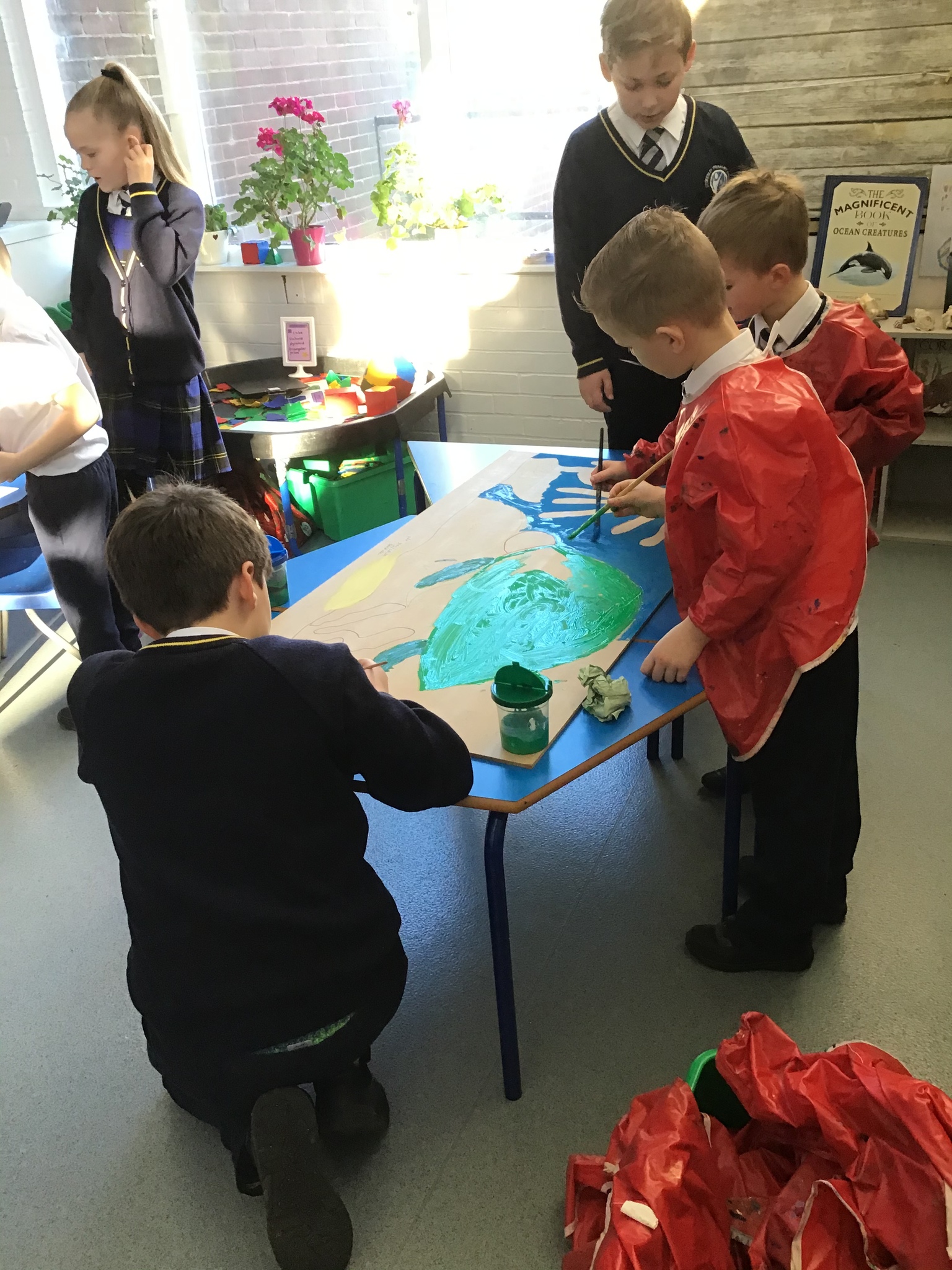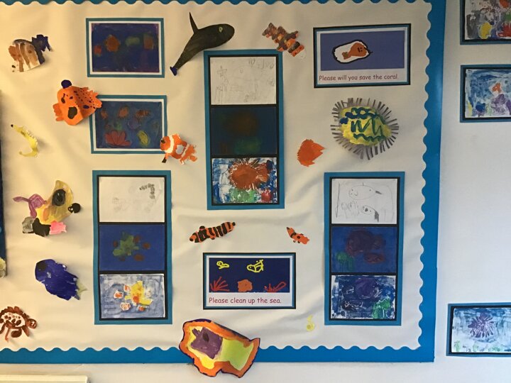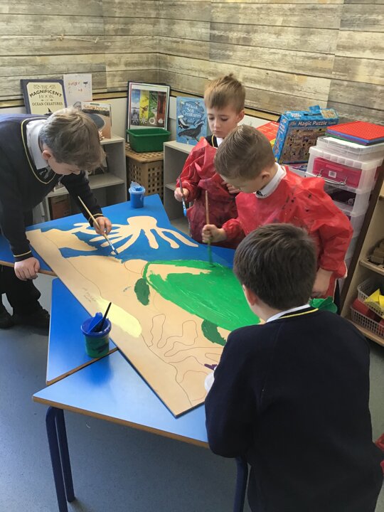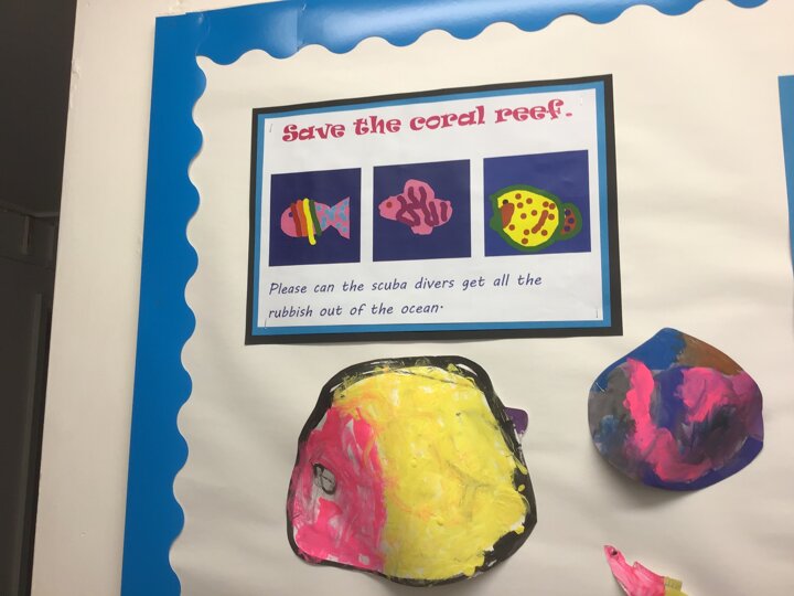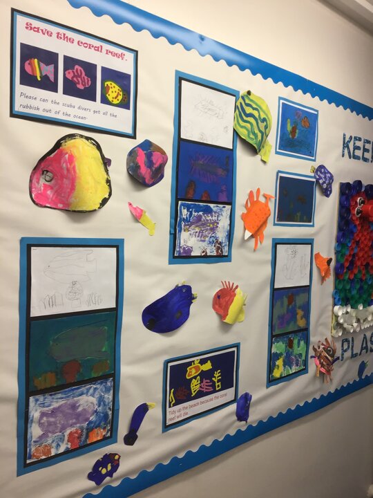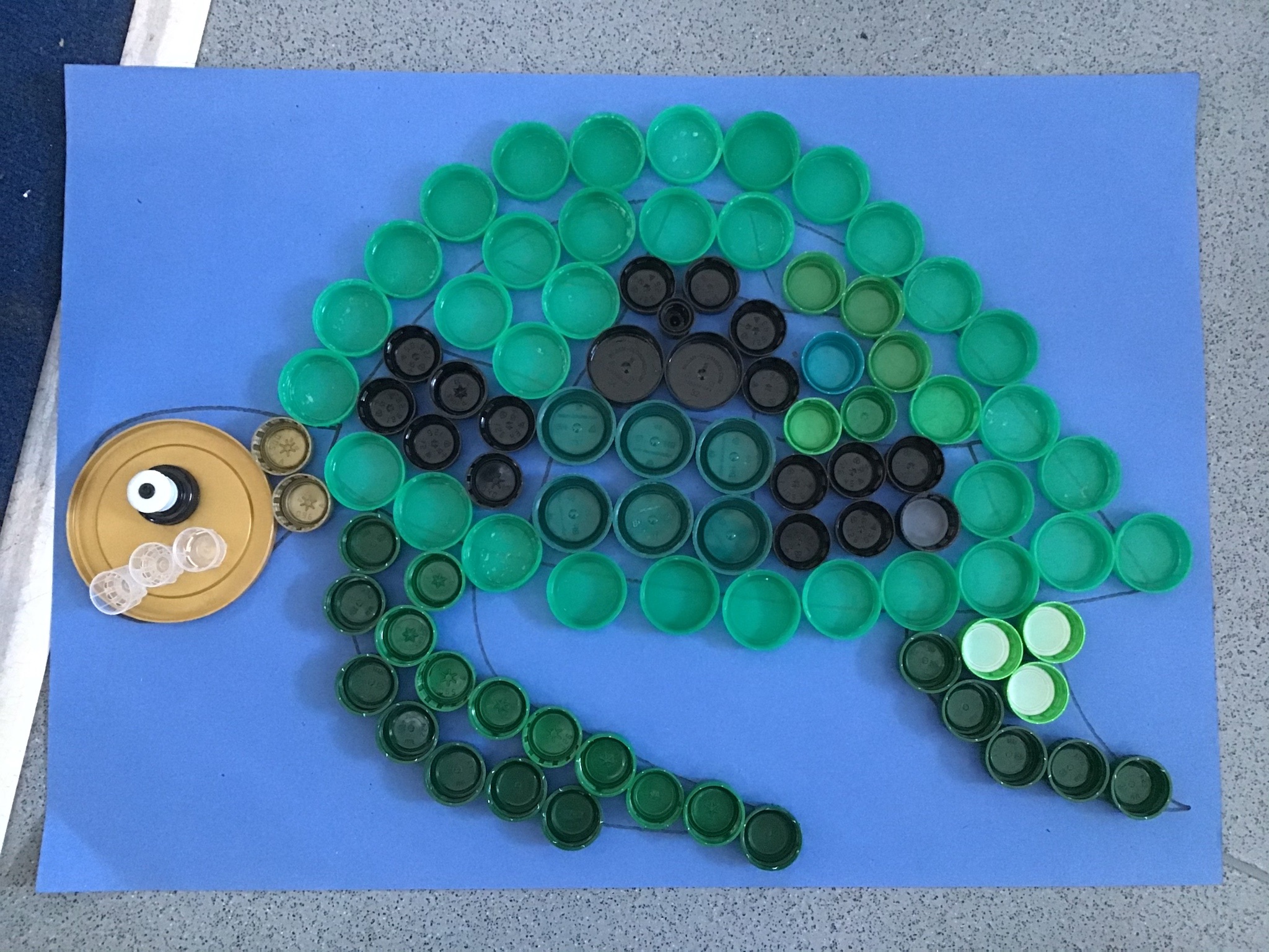 We decided to try and make something beautiful from all of the plastic bottle lids. We hope that seeing all of the lids will help people to think about how much plastic we use in just one week. We are really looking forward to seeing it up on display. Once again we really appreciated the help given by the year 4/5 class who helped us make our mosaic. We enjoyed working as a team and were really glad that they could help us with the tricky hot glue!